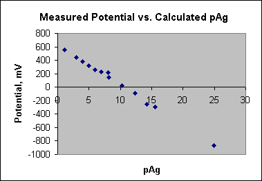 where E0 is the standard potential and n is the ion's charge. The Nernst formula applies continuously to potential differences for which one of the two species is present in the samples in amounts far below a single atom. The results in [1] refer to ion-selective silver sulfide membrane electrodes where the silver electrode is immersed in a reference solution separated from the sample solution by a silver sulfide membrane, which is permeable only to silver ions. At equilibrium the potential across the membrane will prevent movement of silver ions , so that the measured potential corresponds to a specific amount of silver ions in the sample solution.